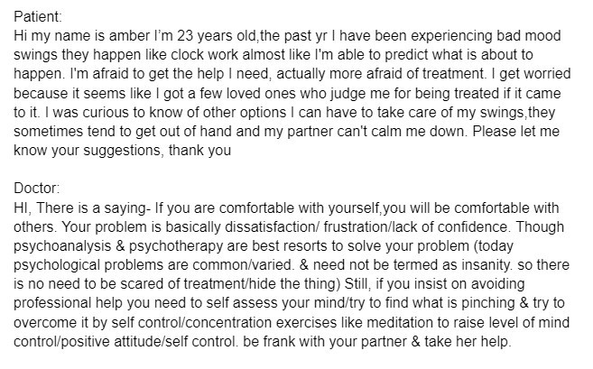 For this project I chose two sources of data: A book called “ Handbook of Signs & Symptoms ” by Lippincott Williams & Wilkins and a dataset of medical forum question and answers. I chose these in particular because they not only had information of useful medical knowledge, but it also had advice on what questions to ask the patient. This allowed the chatbot to figure out what follow up questions it needed to ask in order to get a more complete picture about their symptoms and provide a more concise answer.