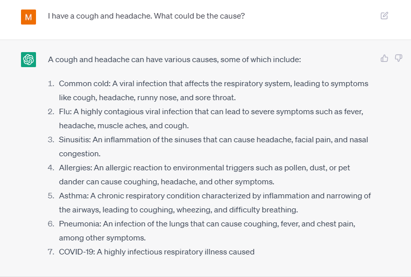 Finally, when faced with something that neither ChatGPT or MedGPT can solve, ChatGPT likes to guess what it is rather than just saying it doesn’t know. Admittedly, it does sometimes guess right while MedGPT is inconclusive, however it also gets it wrong. Getting a diagnosis wrong, even ten percent of the time, is arguably worse than not getting anything at all. The risk associated with AI goes down while using MedGPT.
